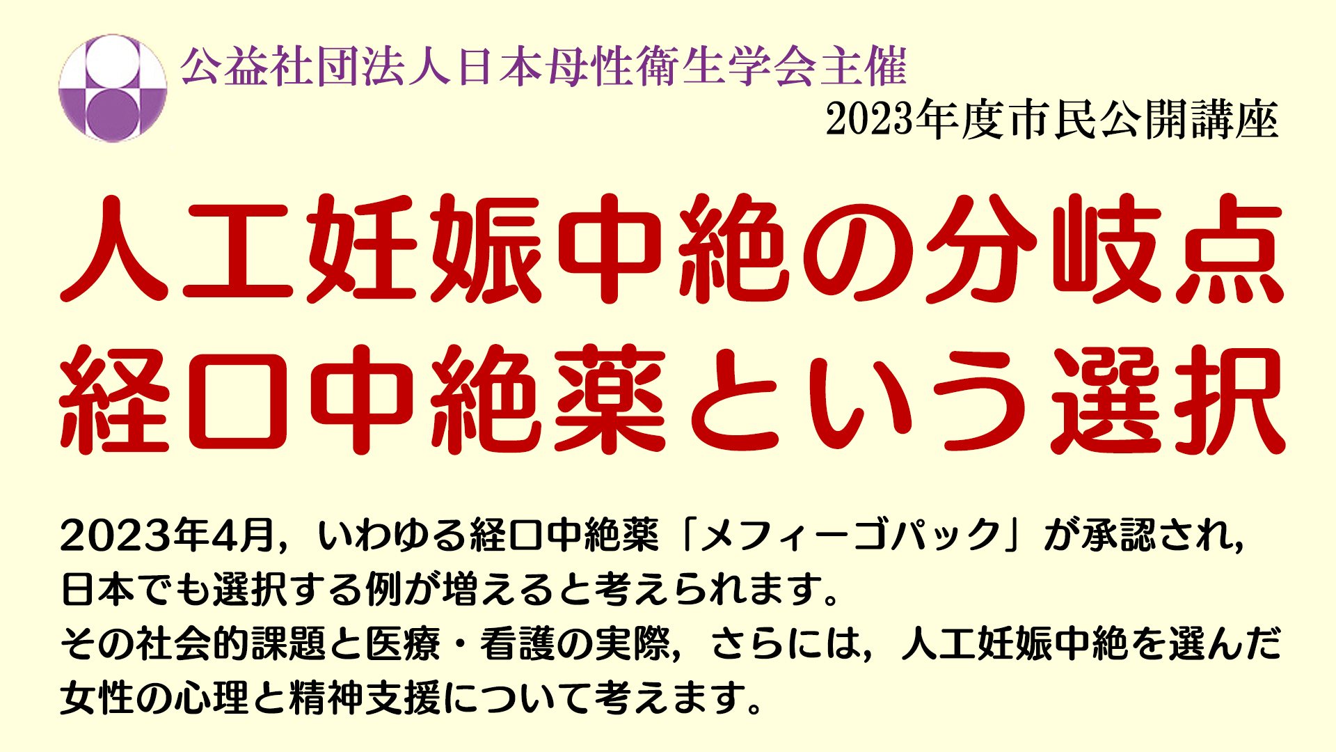 - 「2023年度市民公開講座:人工妊娠中絶の分岐点 経口中絶薬という選択」の動画を追加いたしました。